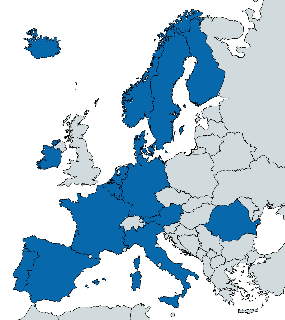 | 🇦🇹 🇧🇪 🇩🇪 🇩🇰 🇫🇮 🇫🇷 🇮🇸 🇳🇱 🇳🇴 🇸🇪 | 🇪🇺 🇪🇸 🇮🇪 🇮🇹 🇱🇺 🇵🇹 | 🇷🇴 |