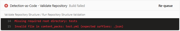 - Structure – Ensure that required directories (e.g. detections/, parsers/, content_packs/ etc.) are present, naming conventions (e.g. lowercase, proper prefixes/suffixes) are followed, and that each directory contains the expected files.